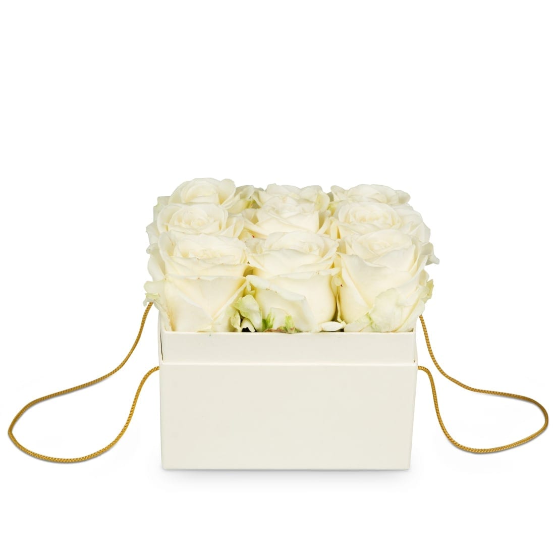 Diese elegante Rosenbox beinhaltet 9 weisse Rosen.