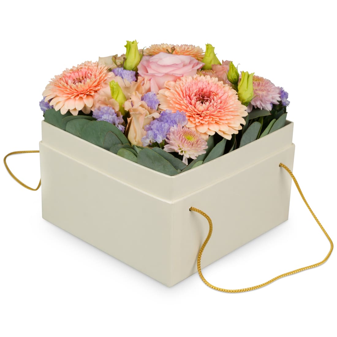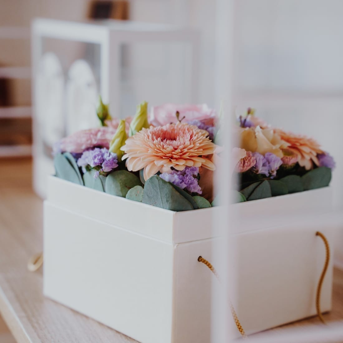 Das perfekte Geschenk für alle Blumenliebhaber. Unsere Box wird mit frischen Blumen gefüllt und eignet sich für alle, die es stylisch und trendy mögen. Die edle Box kann danach zur Aufbewahrung schöner Dinge weiterverwendet werden.