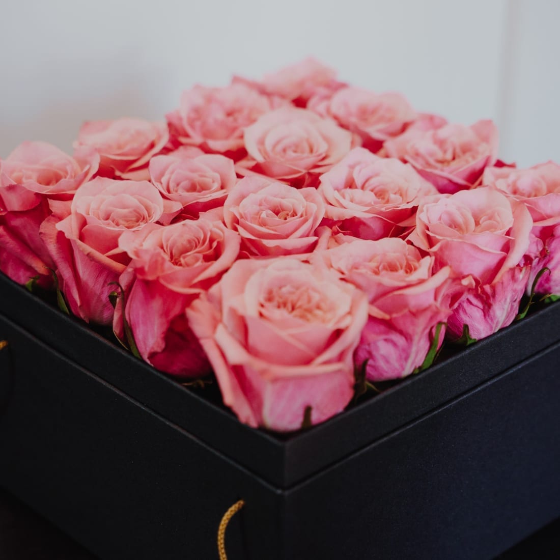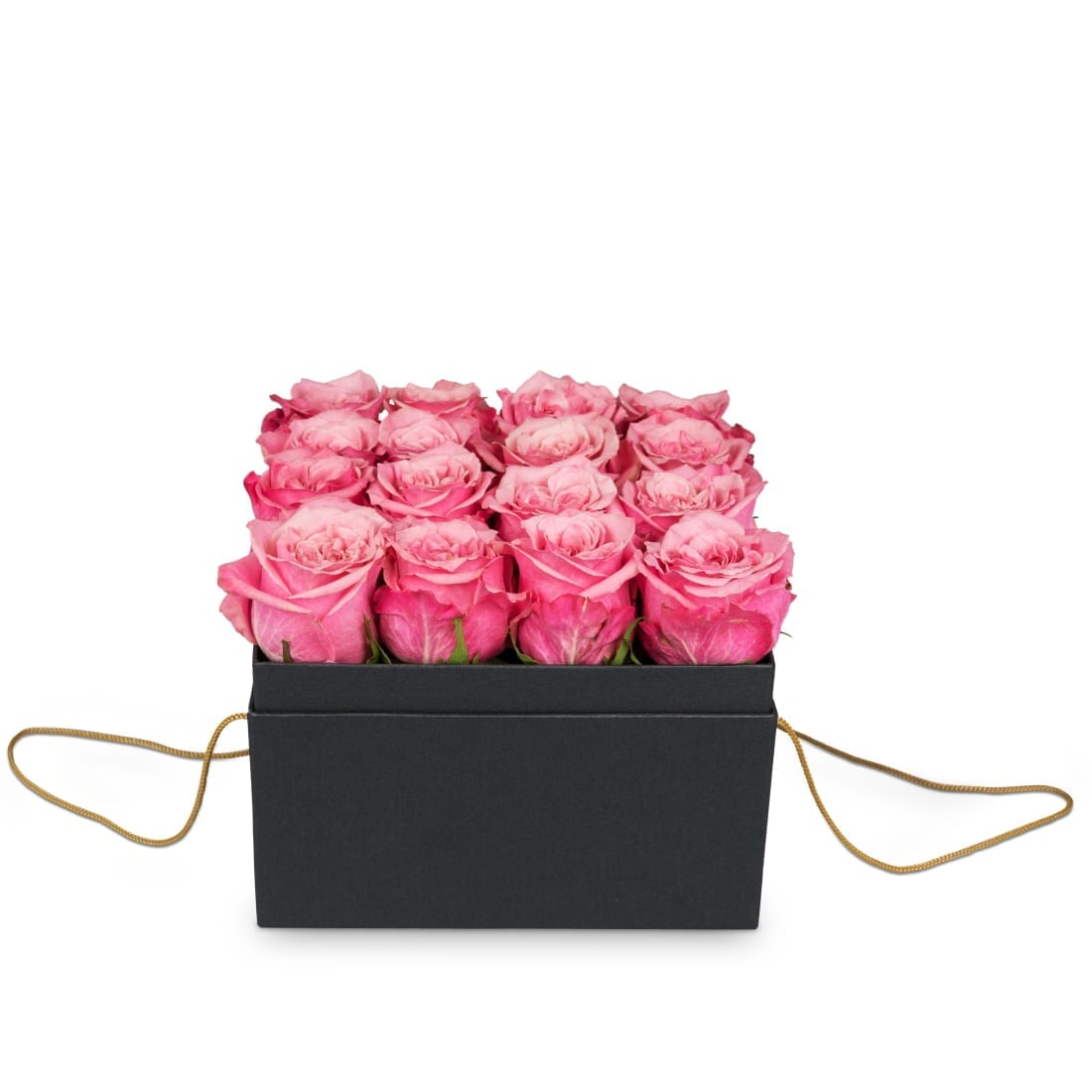 Diese elegante Rosenbox beinhaltet 16 pink-rosafarbene Rosen.