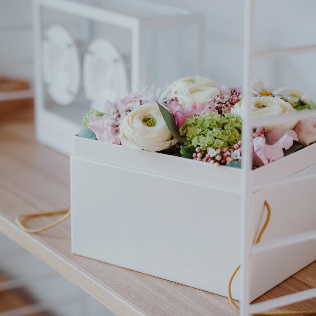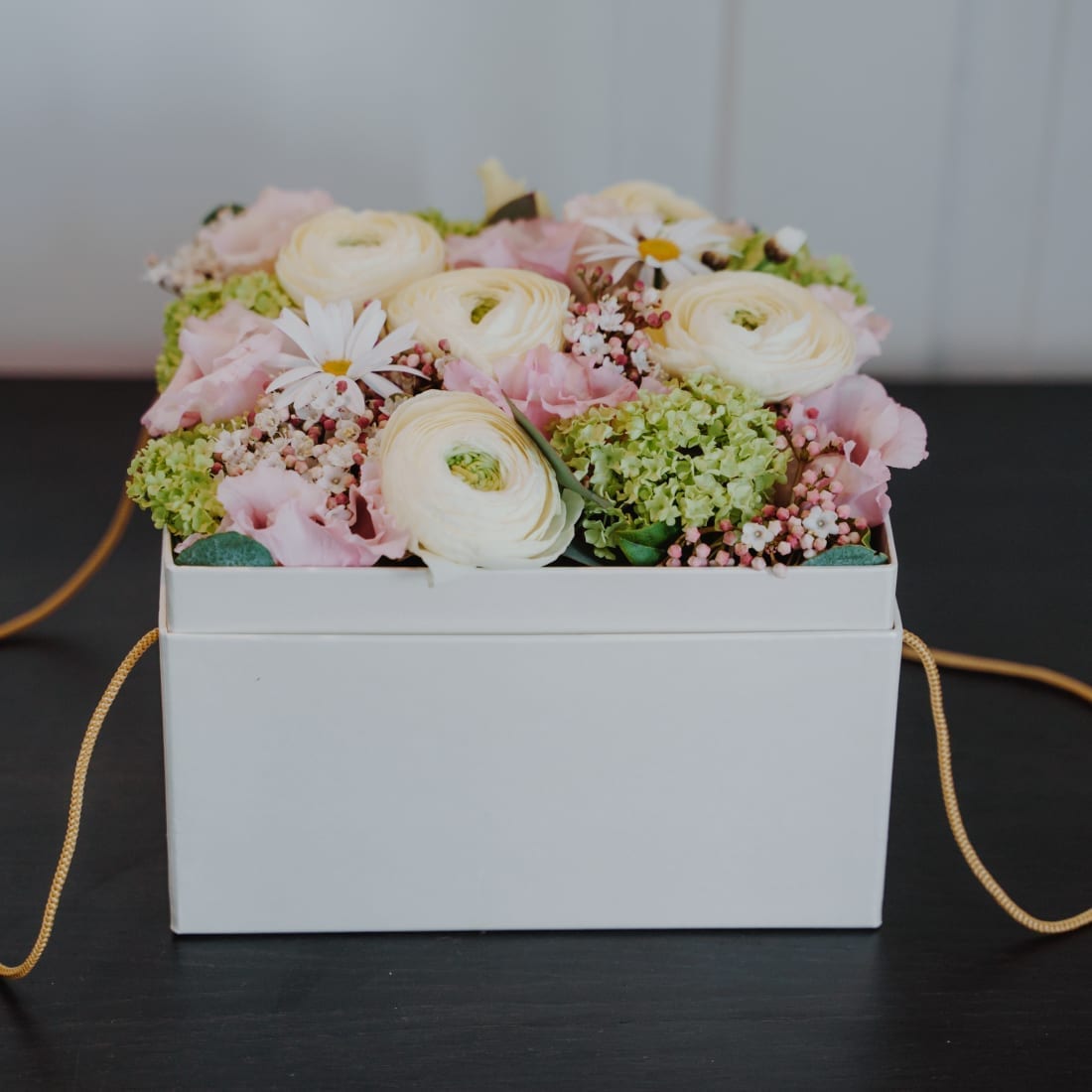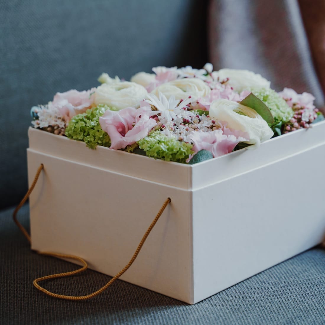 Das perfekte Geschenk für alle Blumenliebhaber. Unsere Box wird mit frischen Blumen gefüllt und eignet sich für alle, die es stylisch und trendy mögen. Die edle Box kann danach zur Aufbewahrung schöner Dinge weiterverwendet werden.