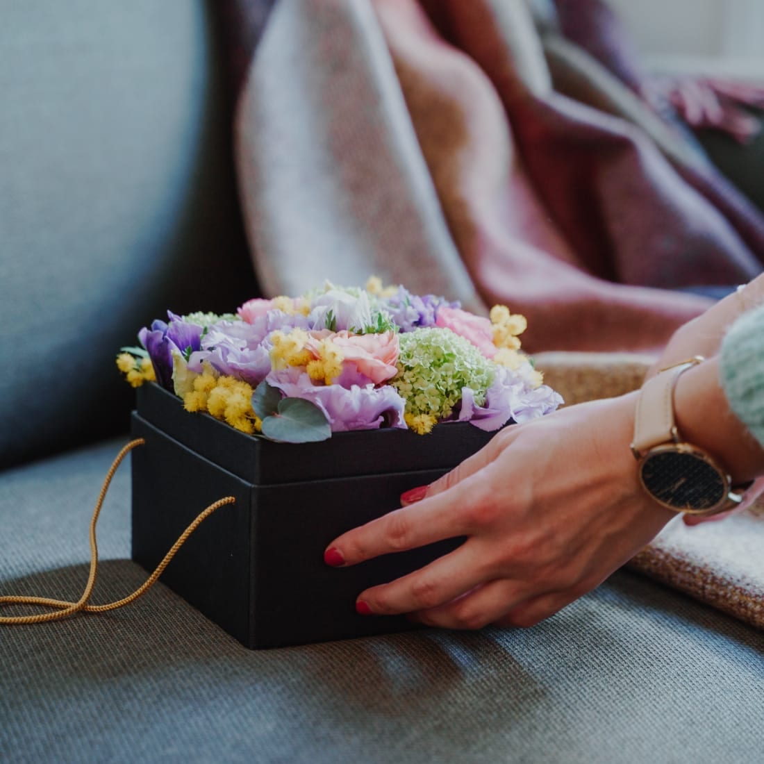 Das perfekte Geschenk für alle Blumenliebhaber. Unsere Box wird mit frischen Blumen gefüllt und eignet sich für alle, die es stylisch und trendy mögen. Die edle Box kann danach zur Aufbewahrung schöner Dinge weiterverwendet werden.