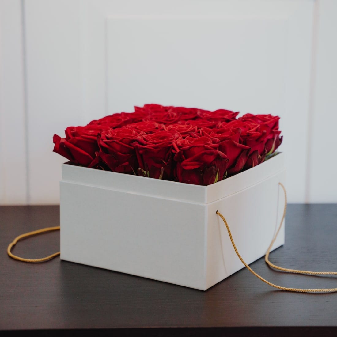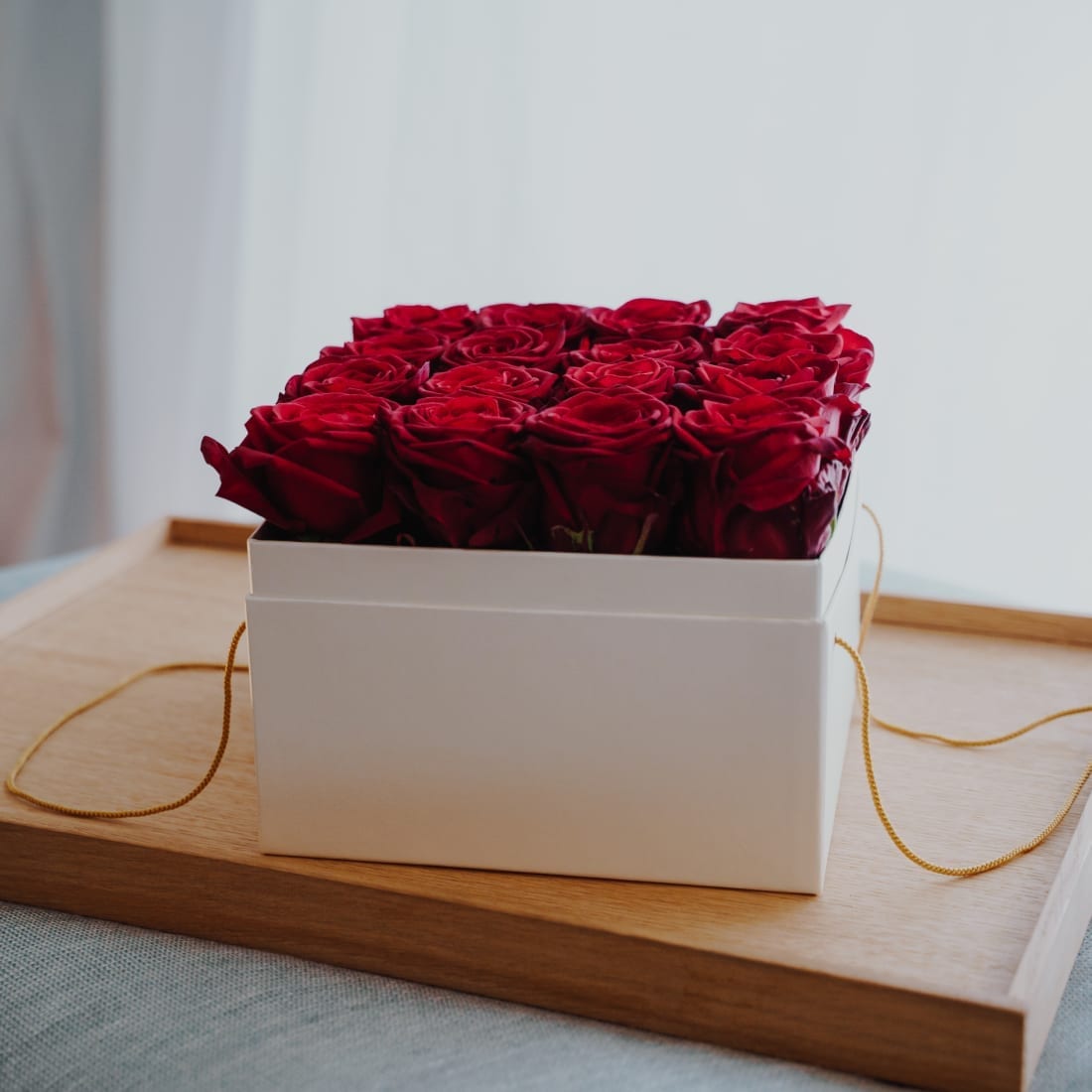 Ein echter Rosentraum! Unsere Box wird mit frischen Rosen gefüllt und eignet sich für alle, die es klassisch und elegant mögen. Die edle Box kann danach zur Aufbewahrung schöner Dinge weiterverwendet werden.