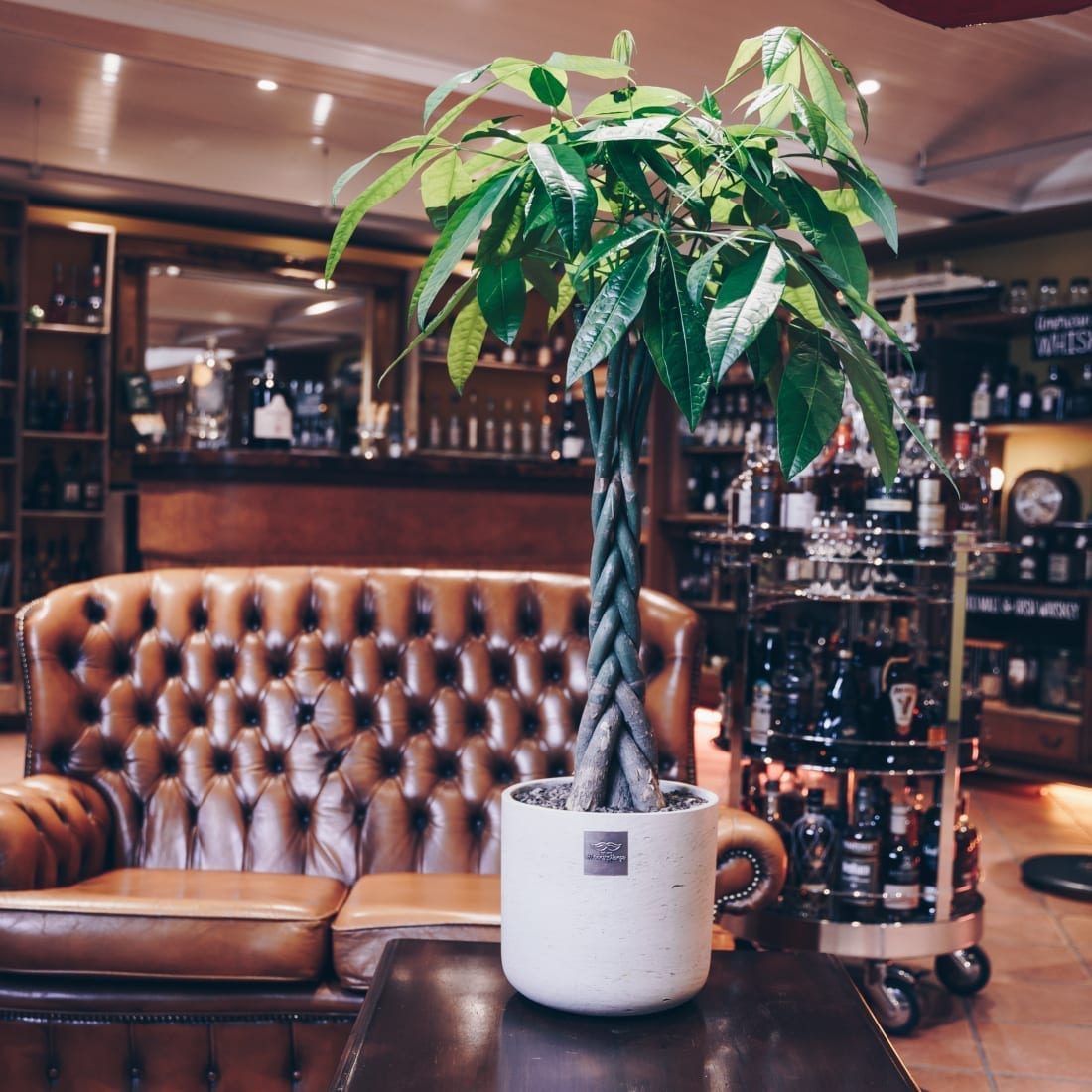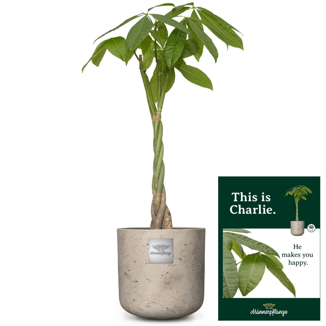 Männerpflanze. Ein Geschenk, bei dem «Mann» mitwächst. Charlie ist eine Pachira aquatica. Topf-Ø: 25cmHöhe: ca. 105cm