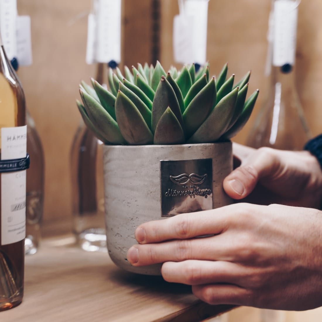 Die Männerpflanze wird mit einer passenden Postkarte (in der jeweiligen Sprache des Lieferorts) und in einer stylischen Männerpflanzenbox geliefert.