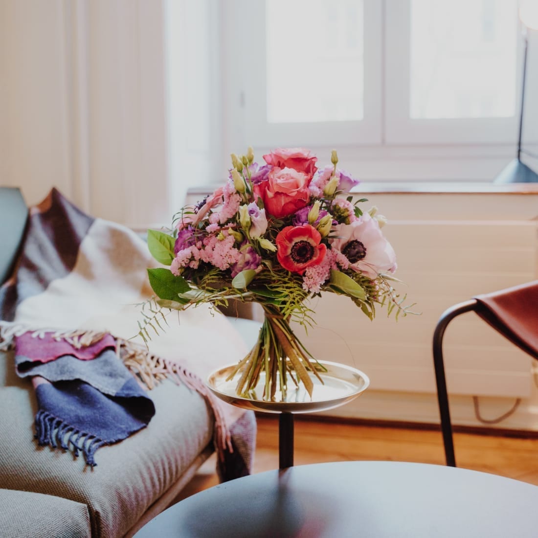 Ein Strauss wie gemacht für eine Prinzessin. Verschenken Sie diese romantische Frühlingsträumerei. Mit Ihrem Blumengruss wird ein edles Geschenk-Set von Gottlieber mit drei verschiedenen Teesorten überbracht.