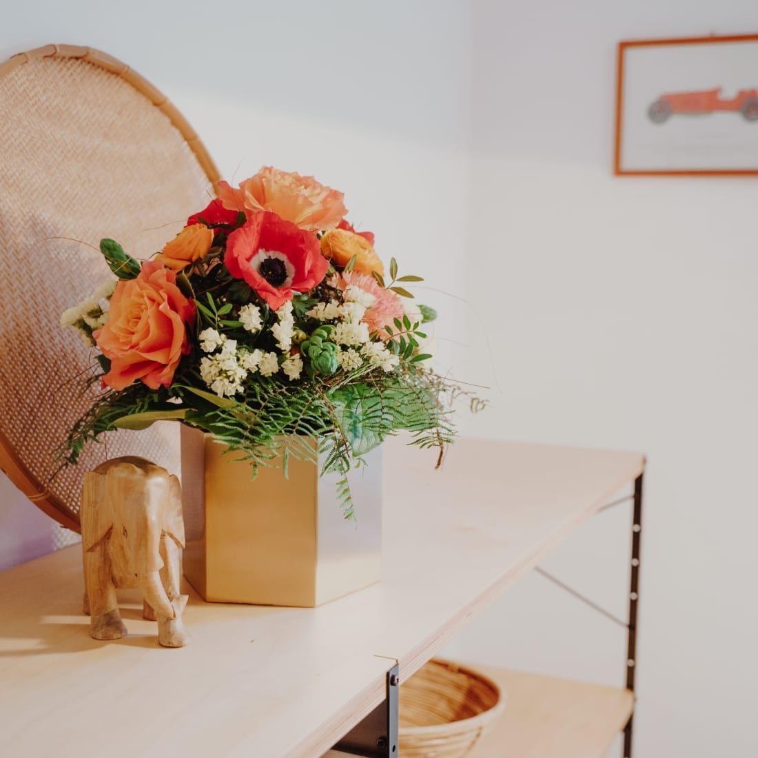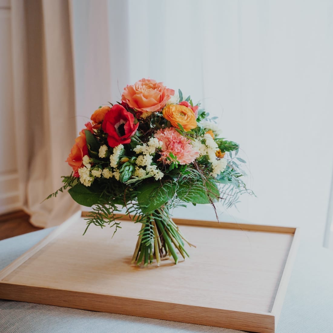 Überraschen Sie jemanden mit dieser kraftvollen Farbkombination. Unser Strauss in Rot-Orange hebt die Stimmung und sorgt für pure Frühlingsfreude.