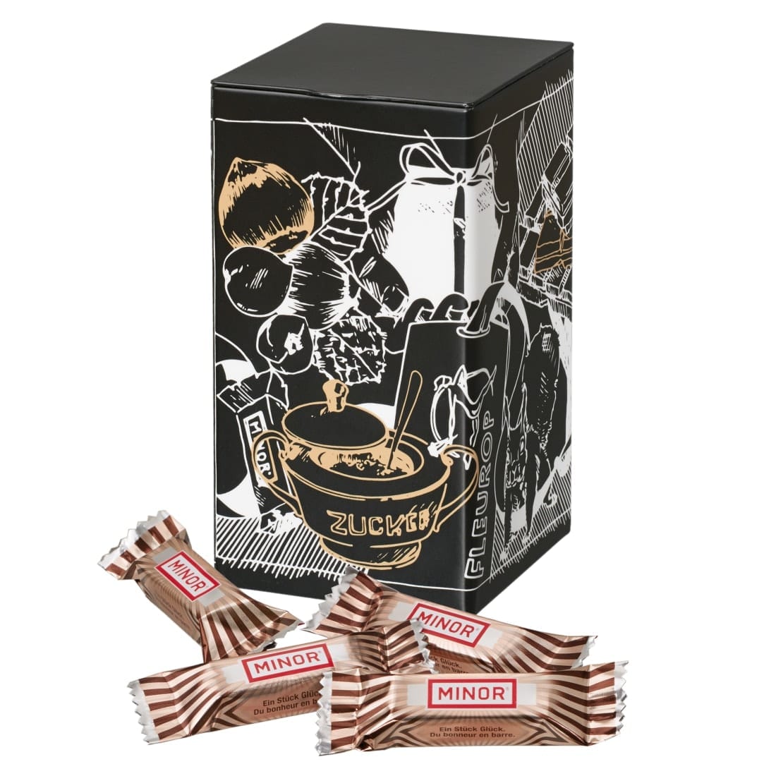 Mit Ihrem Blumengruss werden 110 g feinste Minor Split Minis (Stück à 5g) in einer trendigen Geschenkbox überbracht.