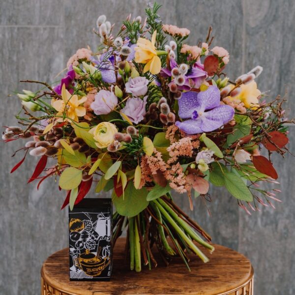 Ein Strauss voll lieblicher Frühlingsblumen, frisch, natürlich und voller Energie. Ein zartes und kreatives Meisterstück.