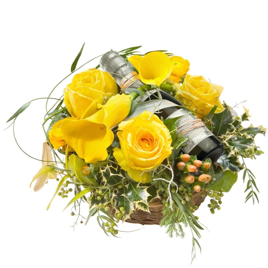 Sonne, gute Laune und leuchtende Blumen. In diesen Blumengruss wird eine 20 cl Flasche exklusiver Prosecco Albino Armani DOC Extra Dry integriert.