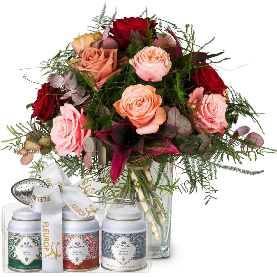 Romantic Roses mit Gottlieber Tee Geschenk-Set