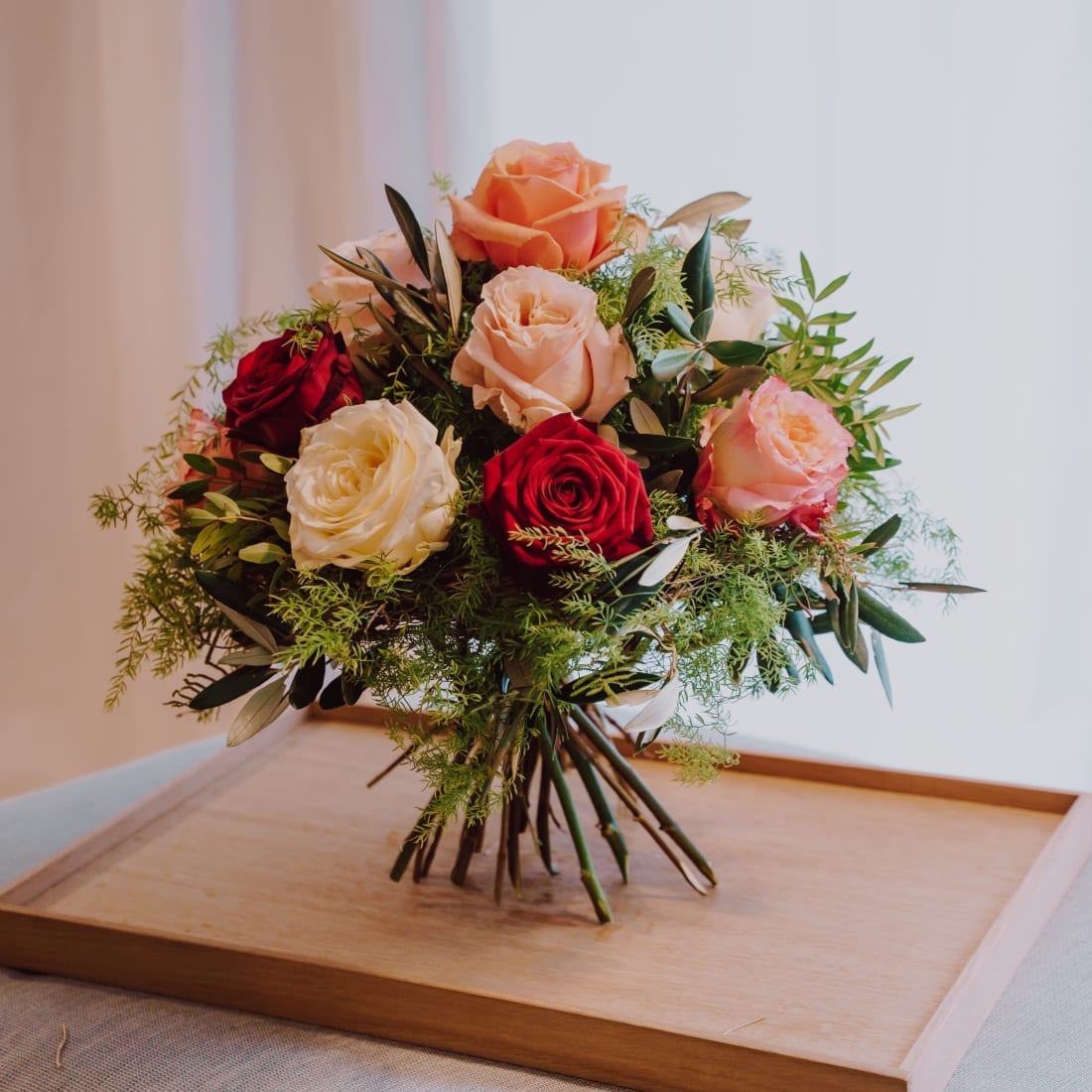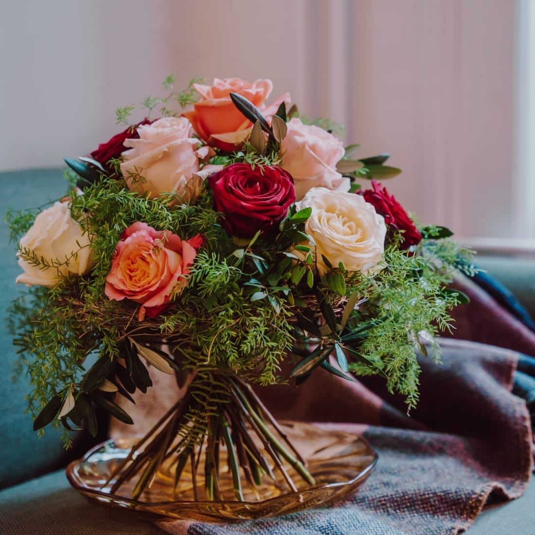 Mit diesem Strauss fühlt man sich wie in einem Märchen. Die filigranen Rosen umrahmt von zartem Grün geben diesem Strauss ein zauberhaftes Aussehen so richtig märchenhaft.
