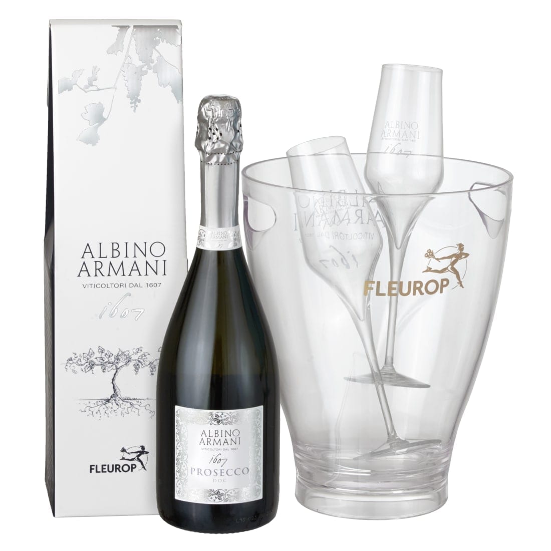 White Elegance mit Prosecco Albino Armani DOC (75 cl), inkl. Eiskühler und zwei Flûte-Gläser