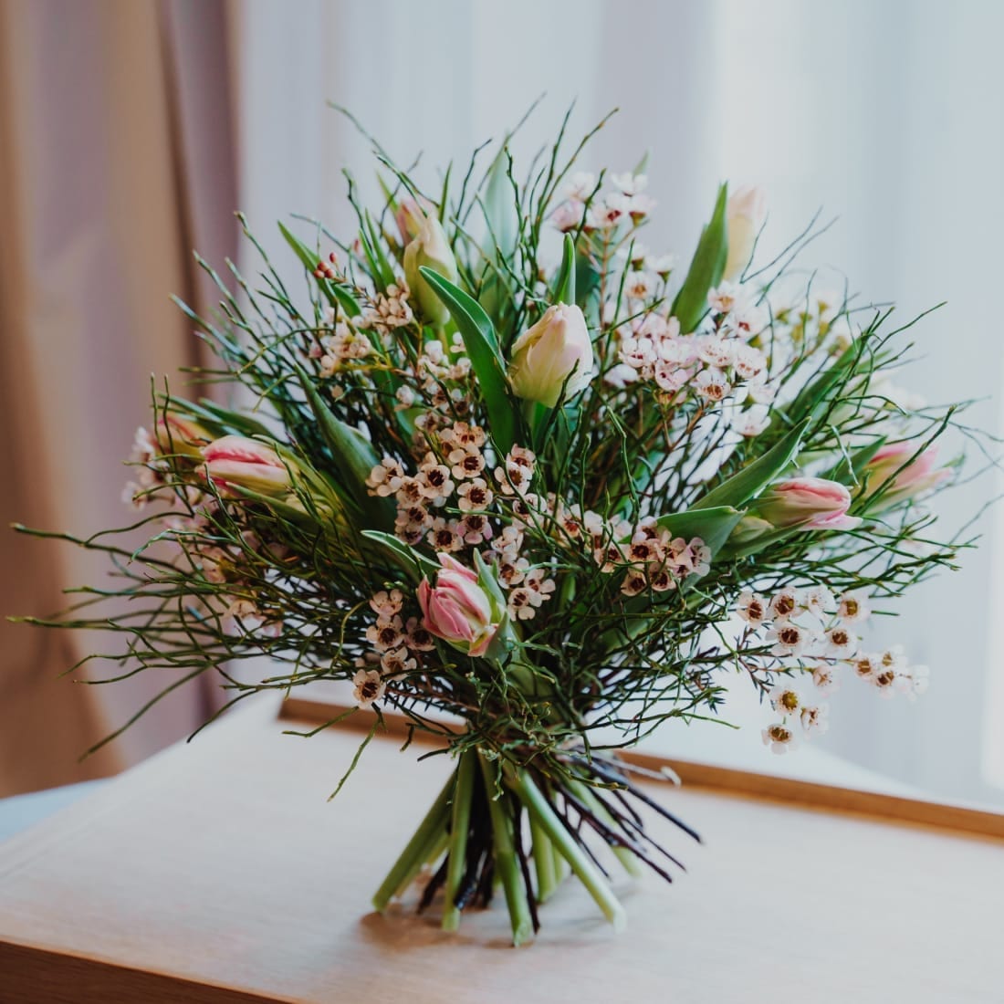 Das Angebot kann vom Floristen den gegebenen Umständen bzw. den verfügbaren Blumen im Laden angepasst werden.
